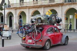 Wir gehen ein paar Schritte weiter zum Hauptplatz. Vor dem Rathaus findet ein kulturelles Event statt und wir setzen uns auf eine der Bänke. Eine kleine Kapelle spielt und ein Tanzpaar zeigt traditionelle Tänze dazu. Kurz darauf startet allerdings die Salsaband an der rechten Seite des Platzes – stimmungsvoll und recht laut. So laut, dass die Tänzer ihre eigene Kapelle nicht mehr hören können und schließlich ratlos aufgeben. Die Salsaband ist gut, allerdings ist das Lokal, vor dem sie spielen, fast leer, denn dort ist die Lautstärke viel zu hoch. Wir setzen uns zwei Gartenlokale weiter und haben immer noch einen prima Sound. Die vereinzelten Straßenmusiker, die trotzdem versuchen den Gästen ein privates Ständchen anzubieten, haben kaum eine Chance. Macht die Salsaband dann aber Pause, wird diese umso vehementer genutzt. Mariachibands, Solomusiker, Sänger und Kleinkünstler schwärmen aus und fallen über die Bar- und Restaurantgäste her, wie ein Schwarm hungriger Mücken auf nichteingesprühte Fußknöchel. Zumindest bis die Salsaband wieder loslegt …